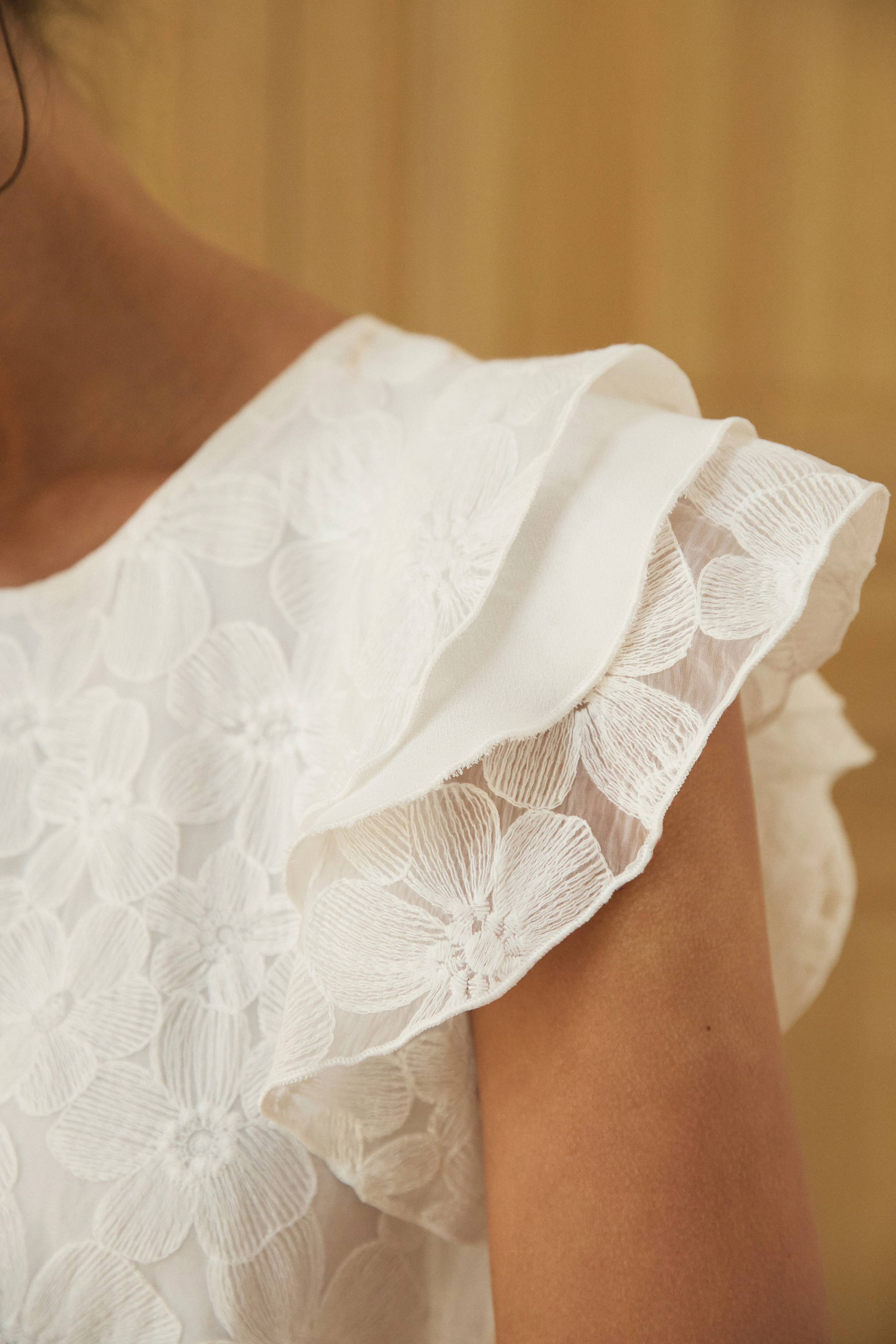 Notre iconique blouse Gisèle se décline dans un sublime tulle brodé de fleurs. Avec ses larges volants, elle apportera une allure folle à votre tenue. Pour les futures mariées, elle s'accordera merveilleusement avec notre pantalon Auguste ou notre jupe Etienne. Mais elle pourra également se porter tous les jours avec notre pantalon Augusta marine ou un simple jean.