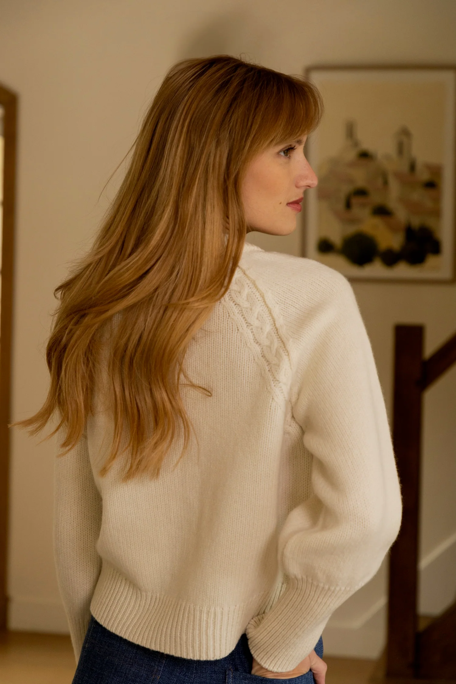 Tricoté en laine mérinos et cachemire, notre gilet Seine a tout les atouts d'un grand classique : une coupe moderne, ajustée et féminine, avec un beau col rond épais, des manches ballons, des poignets longs qui font tout son chic, et un motif de tresse qui décore l'emmanchure. Un gilet qui a été pensé dans ses moindres détails pour vous apporter chaleur, style et réconfort pour très longtemps ! Cette pièce d'exception a été tricotée en Normandie, au sein d'une tricoterie au savoir-faire reconnu par la Haute Couture et labellisée "Entreprise du Patrimoine Vivant". Ses fils proviennent d'une filature italienne et sont d'une qualité et d'une douceur incomparables. Vous pourrez le porter à même la peau ou sous un t-shirt. Son emmanchure raglan vous permettra de le porter sous une veste sans être gênée.