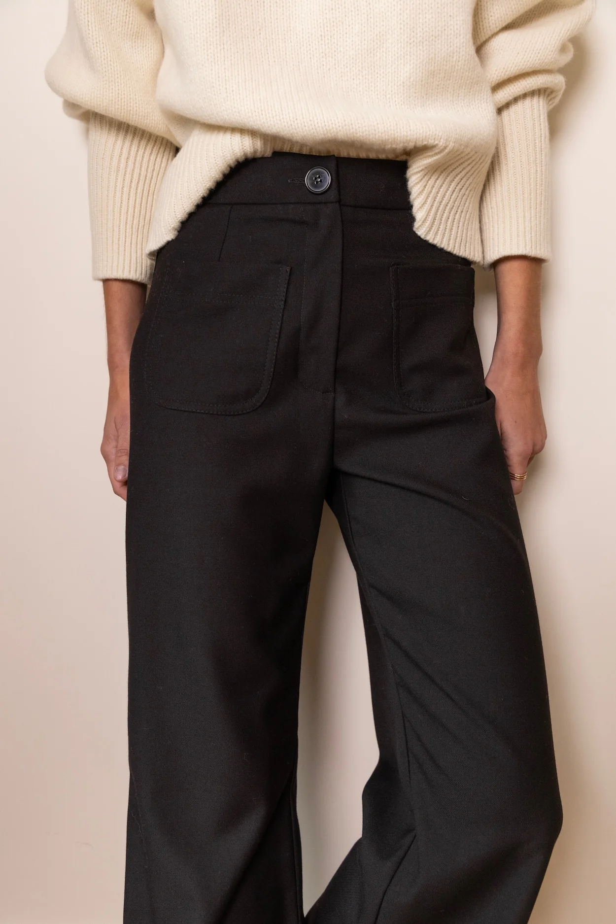 Après le succès cet Ă©tĂ© de sa version Ă©crue, nous avons dĂ©clinĂ© notre pantalon Paimpol en noir pour vous accompagner au quotidien. Coupe taille haute et jambe large, il Ă©pouse parfaitement les hanches tout en offrant un confort incroyable. TestĂ© et approuvĂ© par toutes les silhouettes de l'Ă©quipe !Â