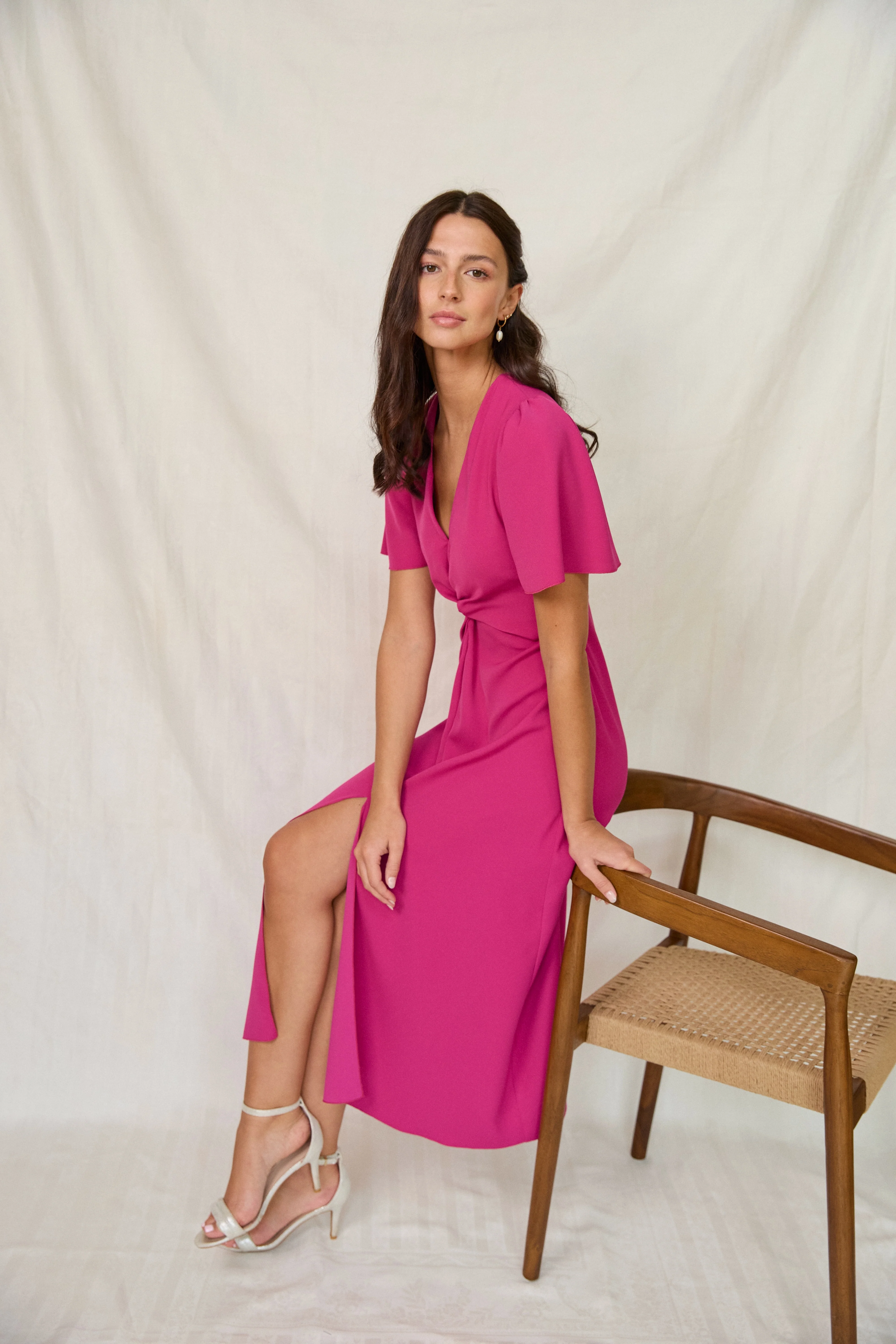 Allure très couture et silhouette de rĂŞve pour notre nouvelle robe Catherine ! Avec son drapĂ©, elle dessine un joli dĂ©colletĂ© et une taille marquĂ©e. Fluide et très fĂ©minine, elle se ferme par une fermeture invisible sur le cĂ´tĂ©. Sa jupe Ă©vasĂ©e et fendue au dessus du genou accompagnera divinement vos pas.Â