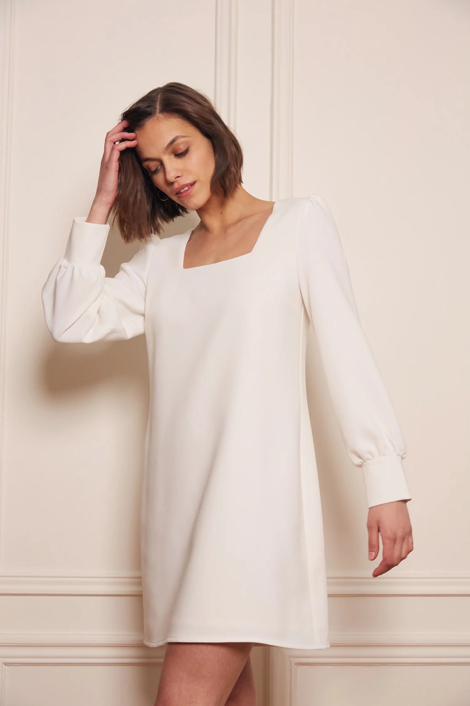 Allure très féminine pour notre nouvelle petite robe blanche ! Elle mettra en valeur toutes les morphologies avec son décolleté carré sublime, sa coupe droite et ses manches resserrées sur le poignet. Une robe parfaite pour un mariage en mi-saison.