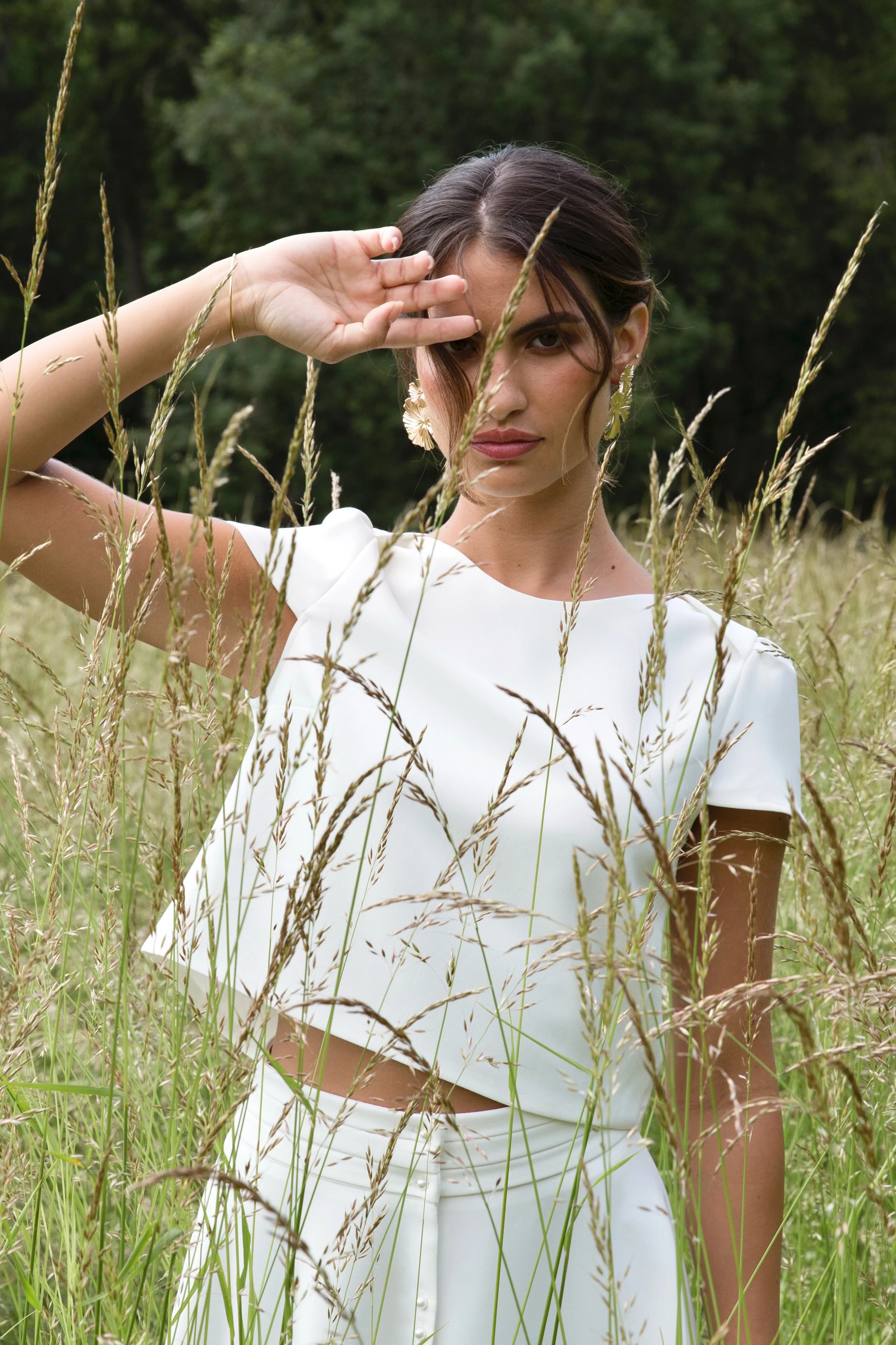 Ce top est conçu dans le même tissu que la jupe Octave pour s'accorder parfaitement avec le jour de votre mariage !
