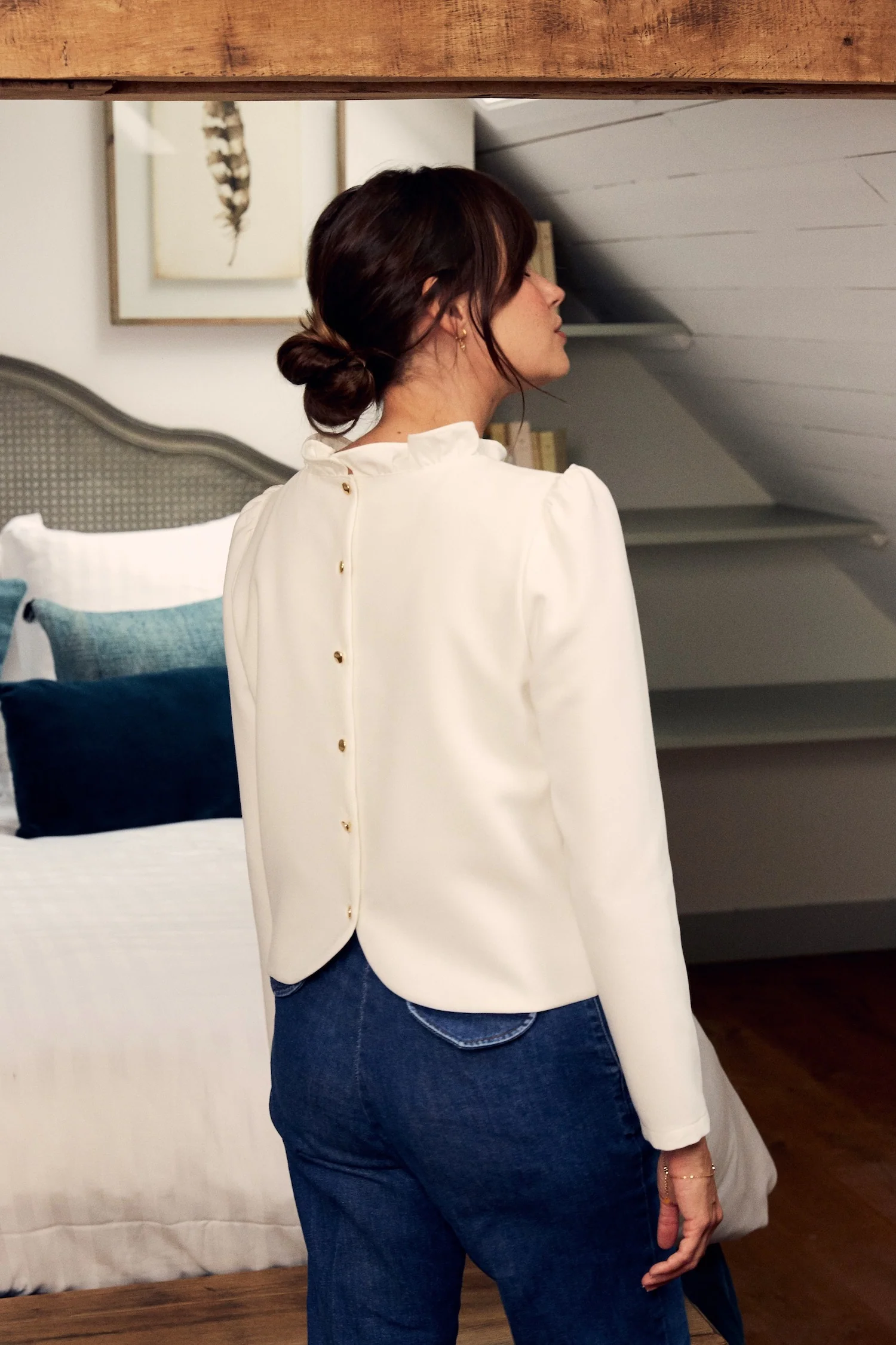Vous avez tellement aimé notre top Odyssée que nous avons souhaité vous le proposer en écru, pour un mix and match parfait avec les autres pièces de votre dressing. On retrouve les mêmes belles finitions : col froncé, coupe cintrée et courte, et joli dos boutonné.